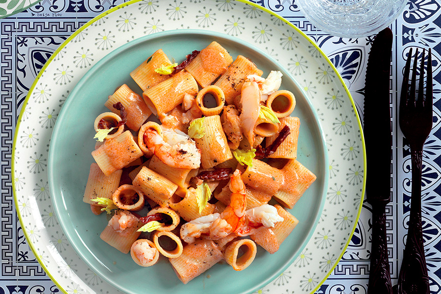 Impiattate la pasta e patate di mare, decorate coi frutti di mare tenuti da parte col guscio, aggiungete un po’ di pepe e servite.