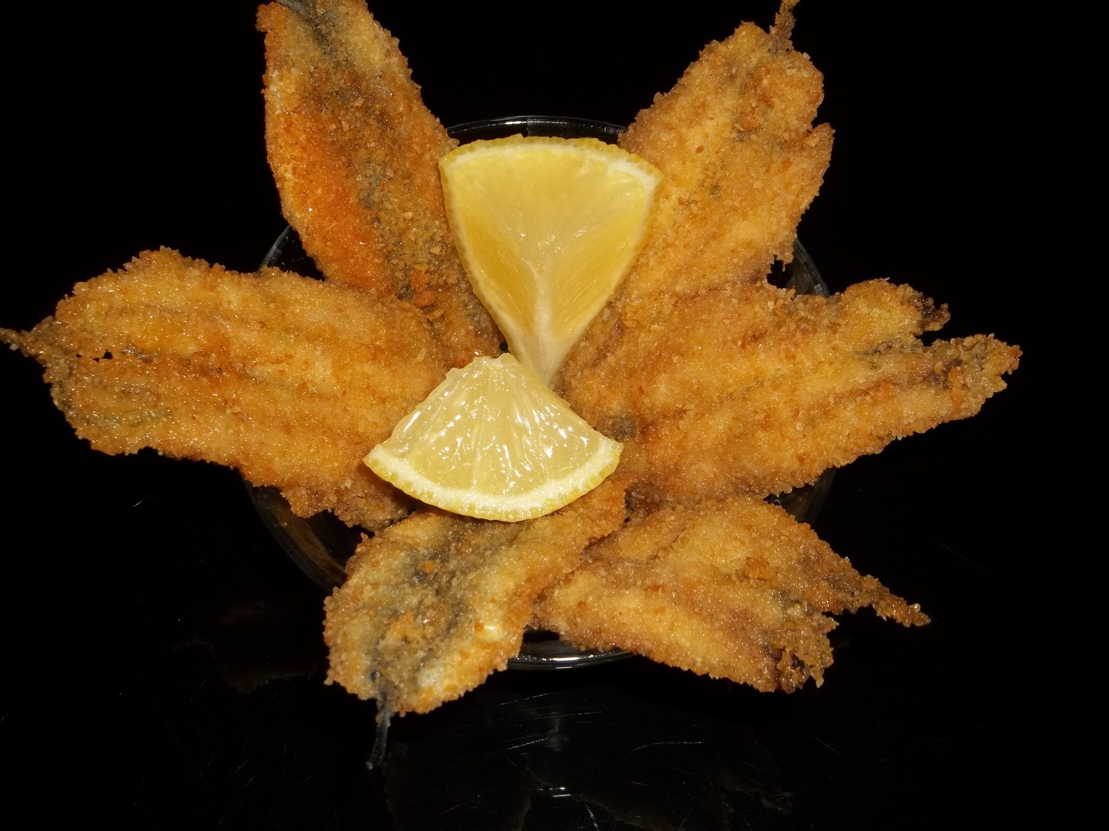 andando a fare la mia spesa mattutina , mi sono imbattuta nella pescheria dove vi ho trovato delle bellissime e grosse acciughe fresche , e un pò che volevo prenderle e farle impanate , ma vi erano sempre piccole e non mi piacevano , l’altra mattina vi erano bellissime e alla giusta grandezza per farle impanate …