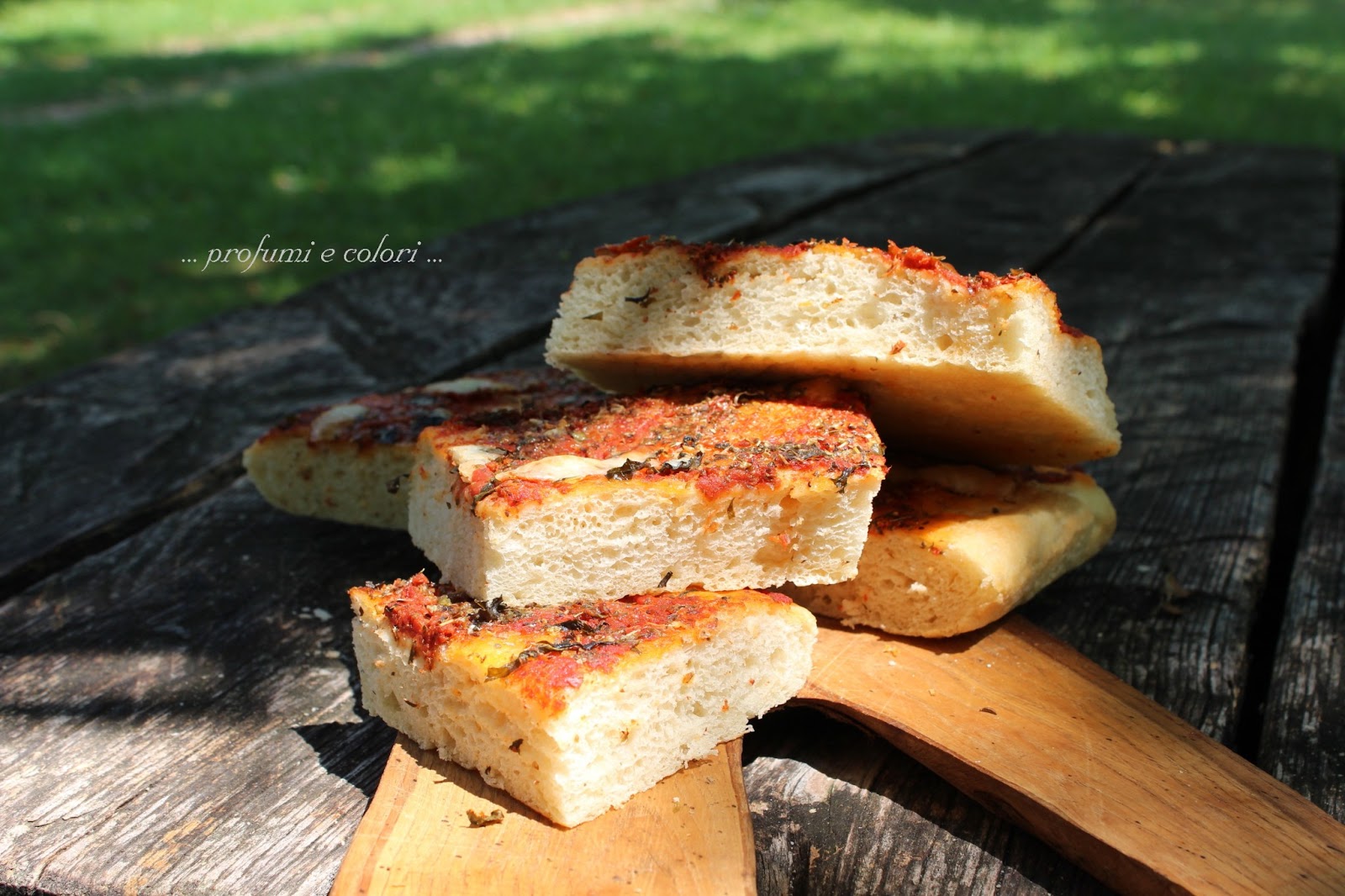 Con questa focaccia vorrei augurare a tutti Voi una bellissima estate, a chi va in vacanza e a chi resta a casa che però potrà coccolarsi con queste meraviglie, almeno per me sarà così
