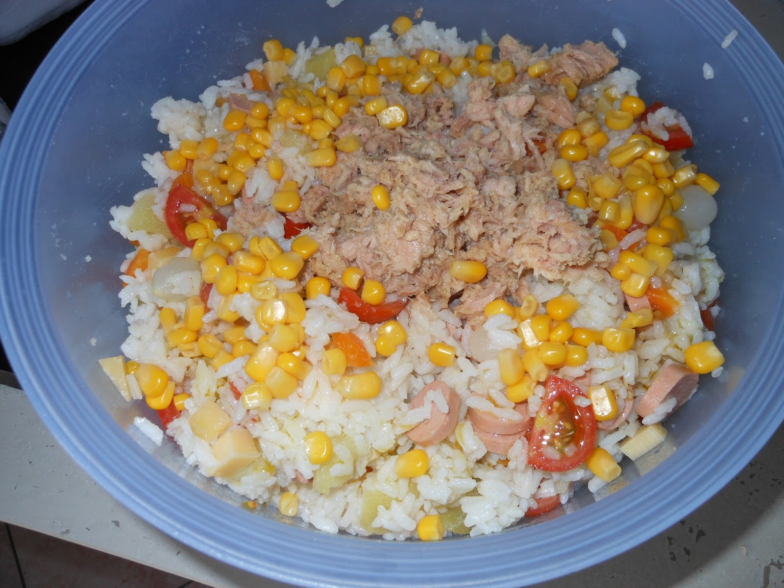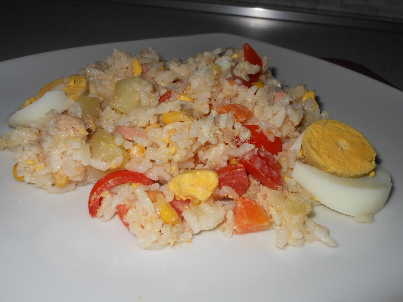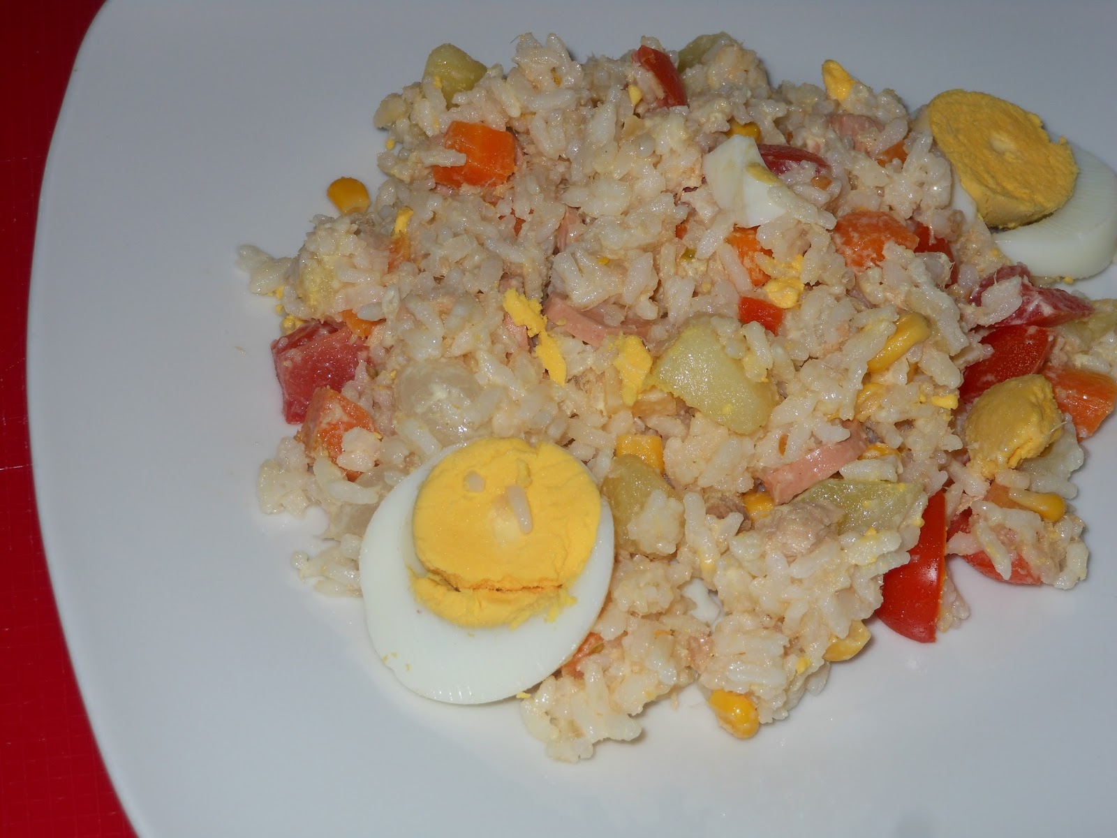 Anche se il fine settimana non e stato proprio da mare , almeno qui da me , ho preparato questa insalata di riso perchè la voglia di accendere i fornelli e sempre meno di zero , però da mangiare ce da fare altrimenti qui divorano me :-))