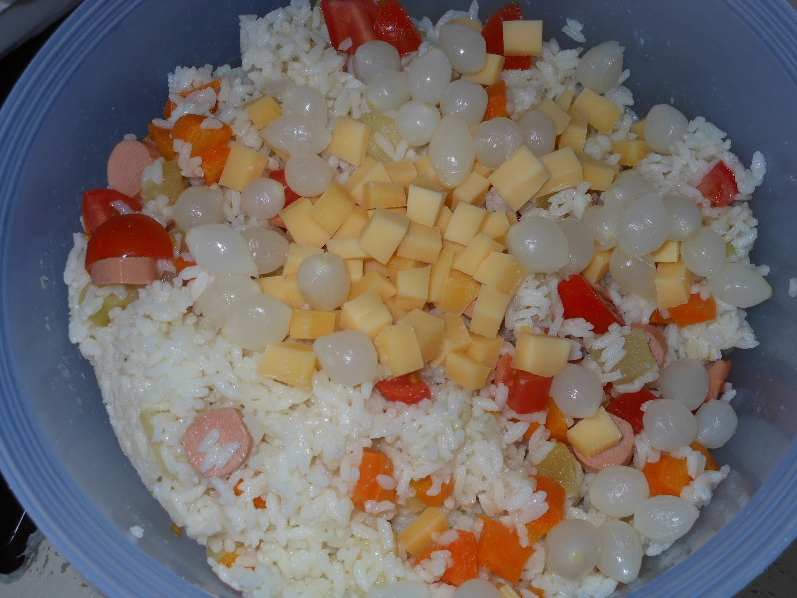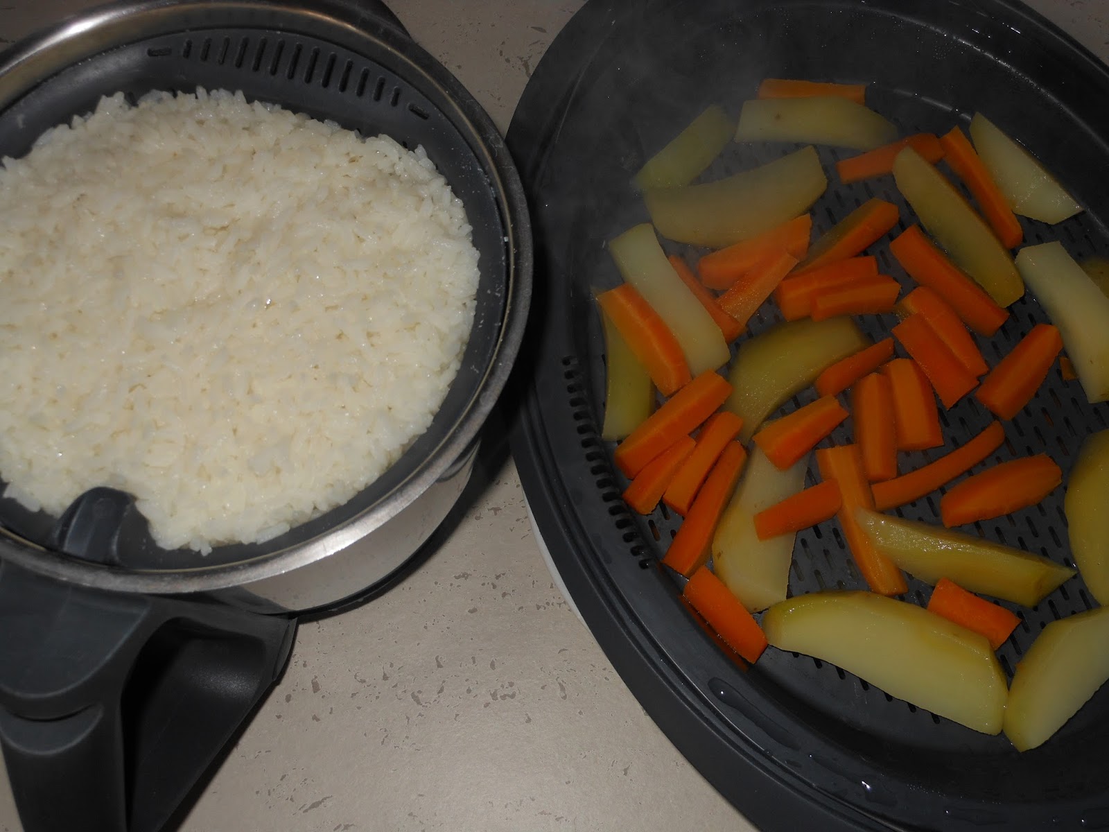 avevo voglia di un insalata di riso bella fresca e condirla con il condiriso proprio non avevo voglia , quindi mi sono detta , accendere i fornelli per lessare il riso e le verdure proprio no , allora ho pensato al mio dolce bimby , e cosi e stato , le verdure e il riso cotte al varoma (vapore) e le sostanze del riso e delle verdure sono rimaste integre …